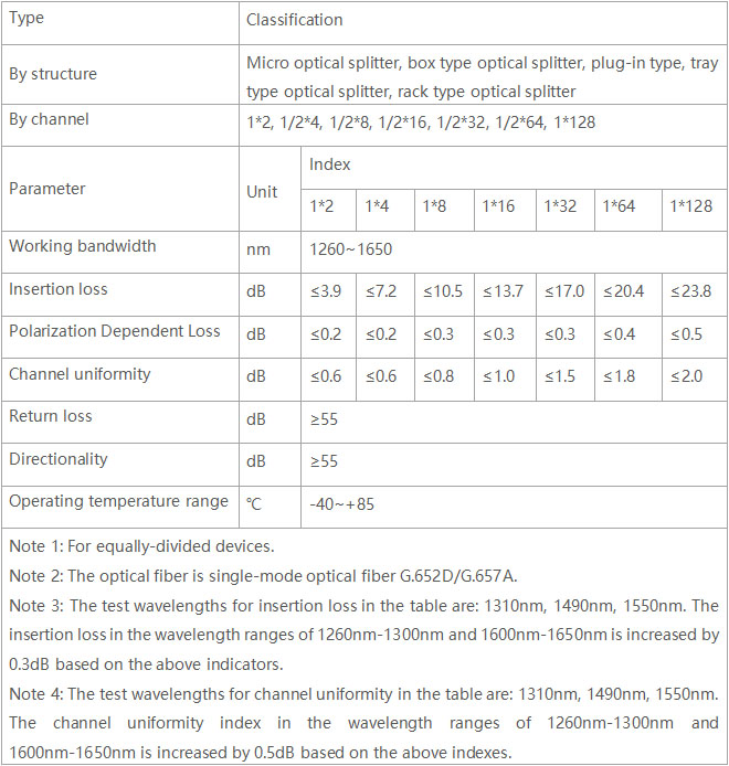 An optical splitter is a device used to realize the division and combination of light wave energy. It distributes the light energy transmitted in one optical fiber to two or more optical fibers according to a predetermined ratio, or combines the light energy transmitted in multiple optical fibers into one optical fiber.